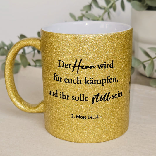 Erster und letzer Bibelvers - Glitzertasse